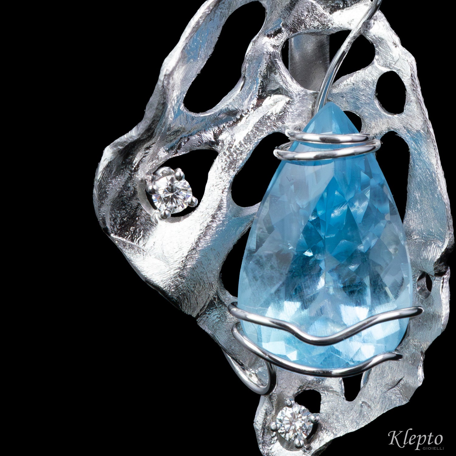 Collier in oro bianco 18kt appartenente all'esclusiva collezione "Regno di Eira", realizzato interamente a mano nel laboratorio Klepto.