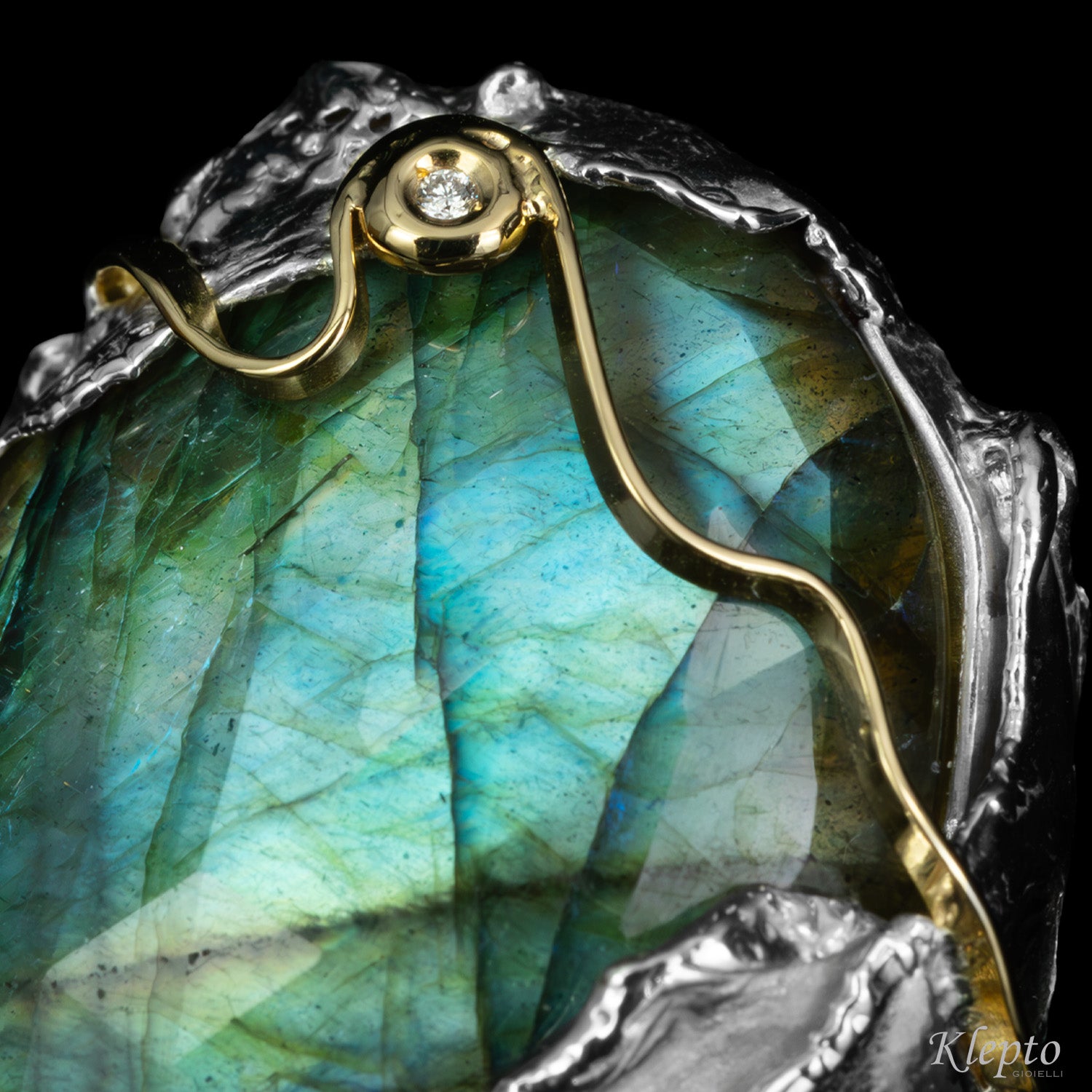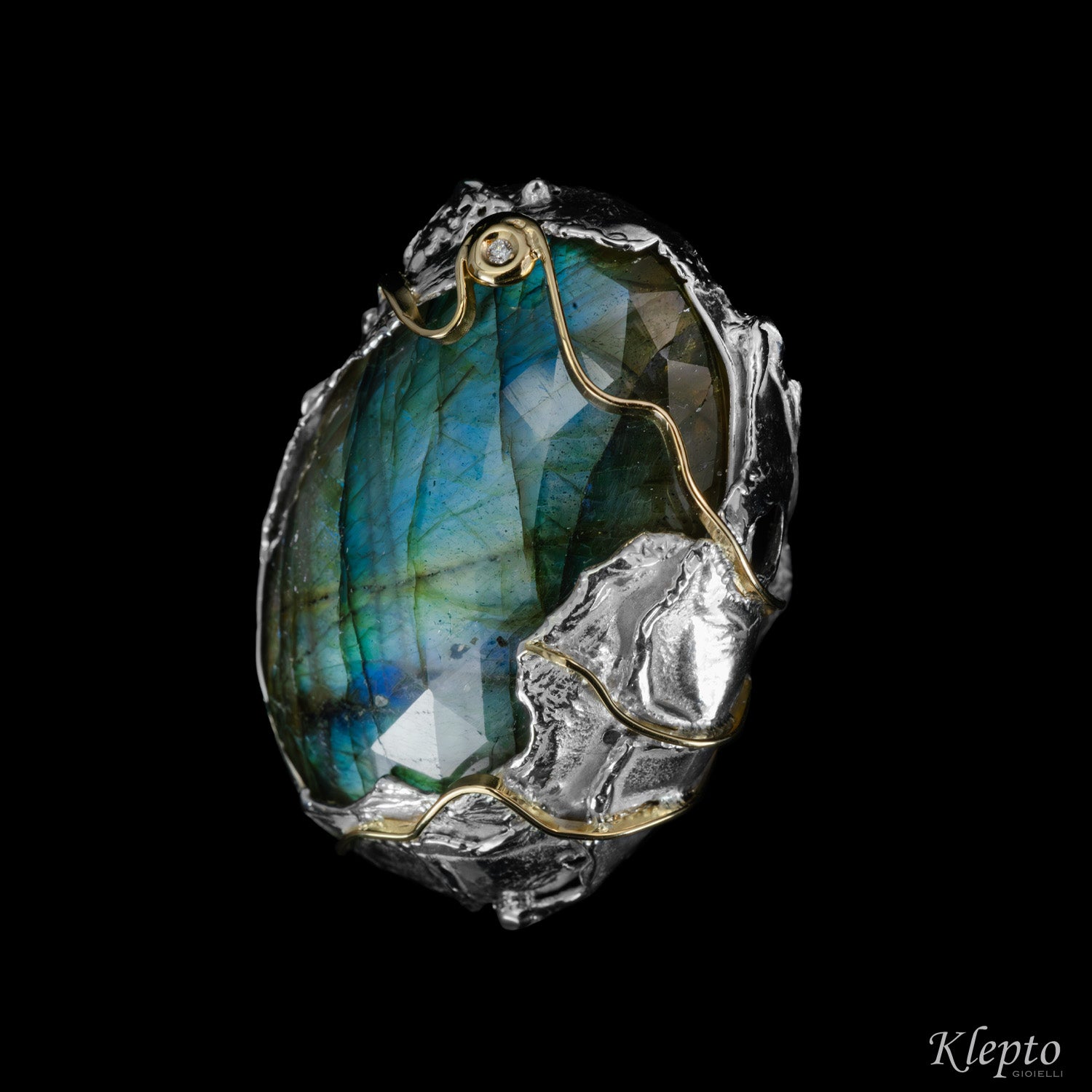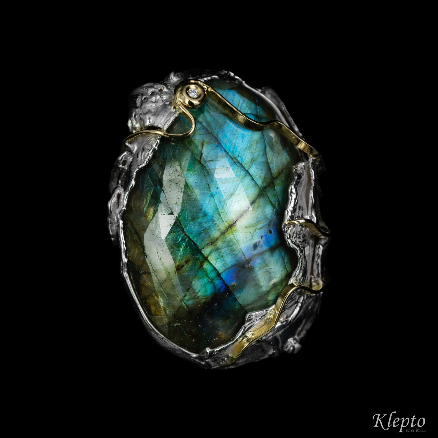 Anello in Argento Silnova con Labradorite, Diamante e dettagli in oro giallo 18kt